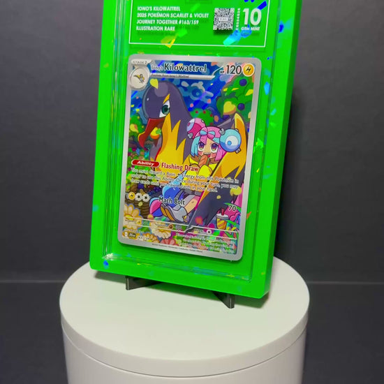 Our Hyper Lime Cracked Ice Refractor Showcase is meticulously designed for TAG graded cards, offering both style and protection. Featuring a vibrant green color with a unique holo/refracted cracked ice pattern, each Showcase is created with high-quality materials for durability and a precise fit. Perfect for "Showcase"-ing your collection while keeping your slabs safe and secure.