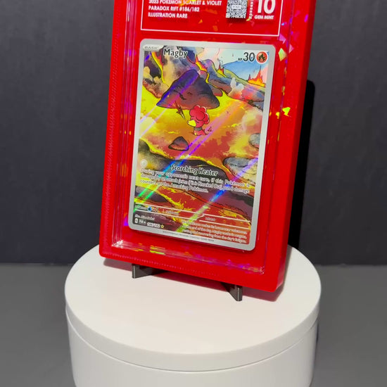 Our Fire Storm Cracked Ice Refractor Showcase is meticulously designed for TAG graded cards, offering both style and protection. Featuring a vibrant red color with a unique holo/refracted cracked ice pattern, each Showcase is created with high-quality materials for durability and a precise fit. Perfect for "Showcase"-ing your collection while keeping your slabs safe and secure.