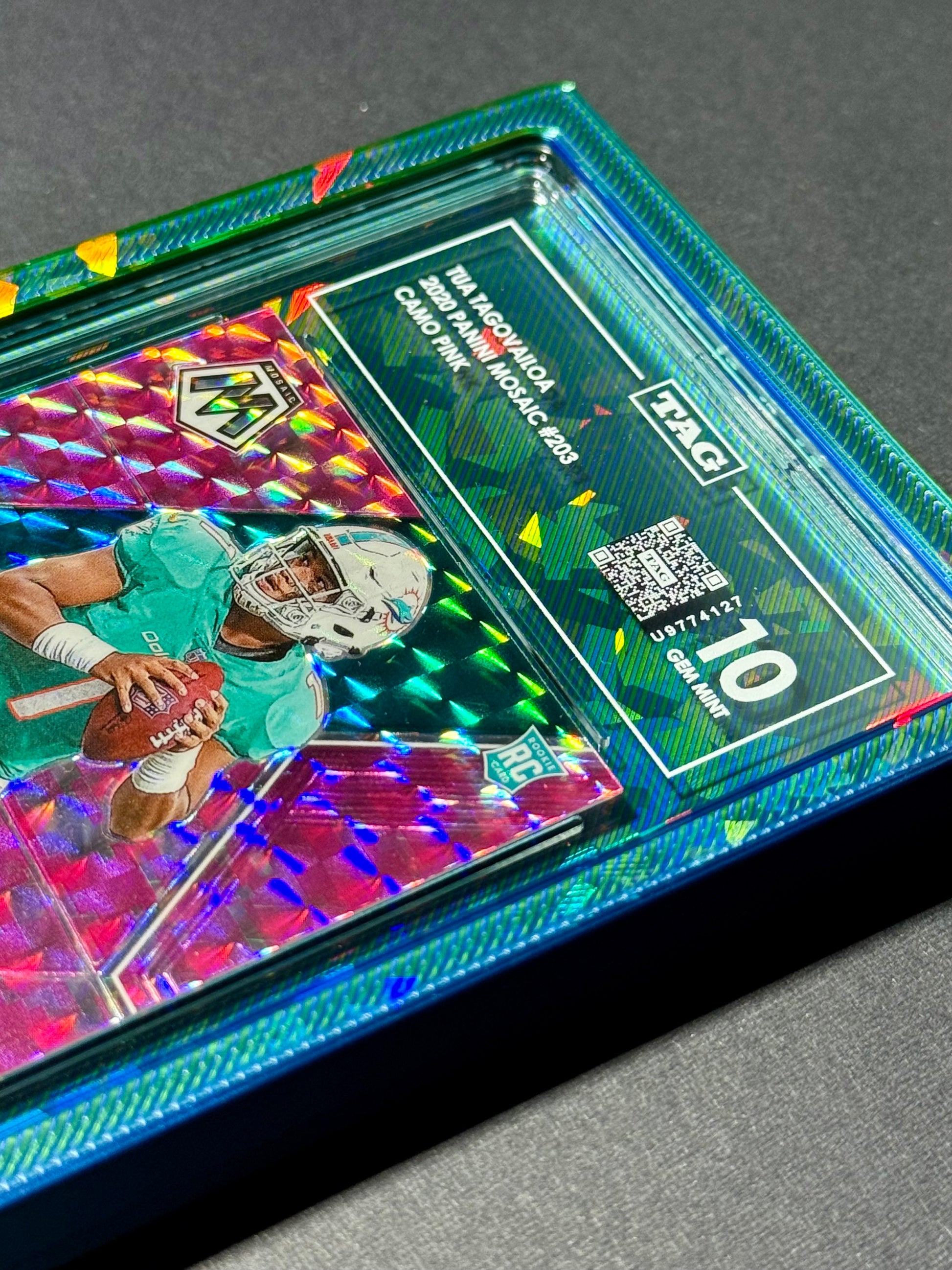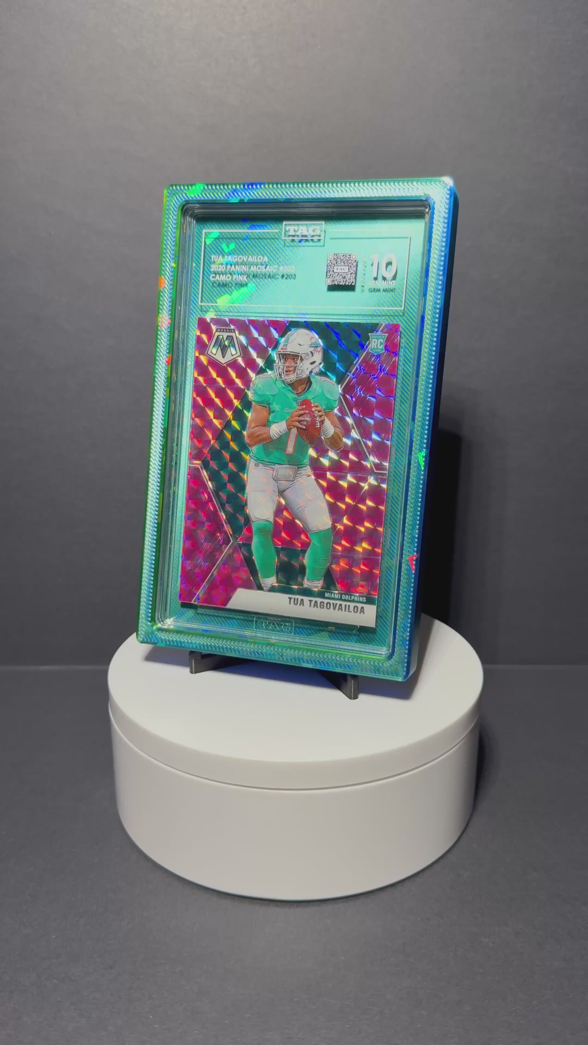 Our Northern Lights Cracked Ice Refractor Showcase is meticulously designed for TAG graded cards, offering both style and protection. Featuring a bold blue & green color with a unique holo/refracted cracked ice pattern, each Showcase is created with high-quality materials for durability and a precise fit. Perfect for "Showcase"-ing your collection while keeping your slabs safe and secure.